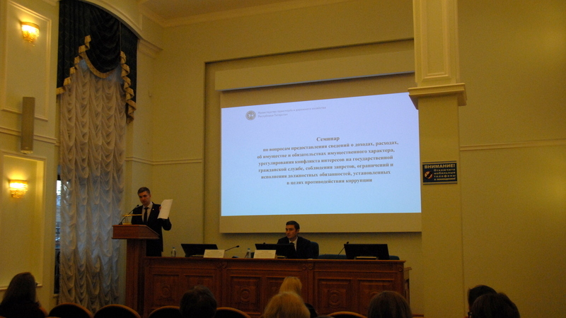 А.Б. Мараткановым проведено обучение служащих и сотрудников Министерства транспорта и дорожного хозяйства Республики Татарстан и подведомственных учреждений. Были затронуты вопросы предоставления сведений о доходах, расходах, об имуществе и обязательствах имущественного характера, урегулирования конфликта интересов, соблюдения ограничений и запретов, установленных в целях противодействия коррупции.