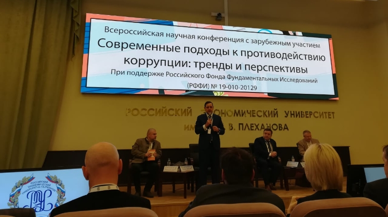 21 ноября 2019 года в Российском экономическом университете им. Г.В. Плеханова прошла Всероссийская научная конференция с зарубежным участием «Современные подходы к противодействию коррупции: тренды и перспективы». В мероприятии приняли участие представители Государственной Думы Российской Федерации, Министерства труда и социальной защиты Российской Федерации, Генеральной прокуратуры Российской Федерации, а также представители иных органов государственной власти, органов местного самоуправления, субъектов Российской Федерации, институтов гражданского общества и научной общественности. Общее количество участников конференции составило более 130 человек.