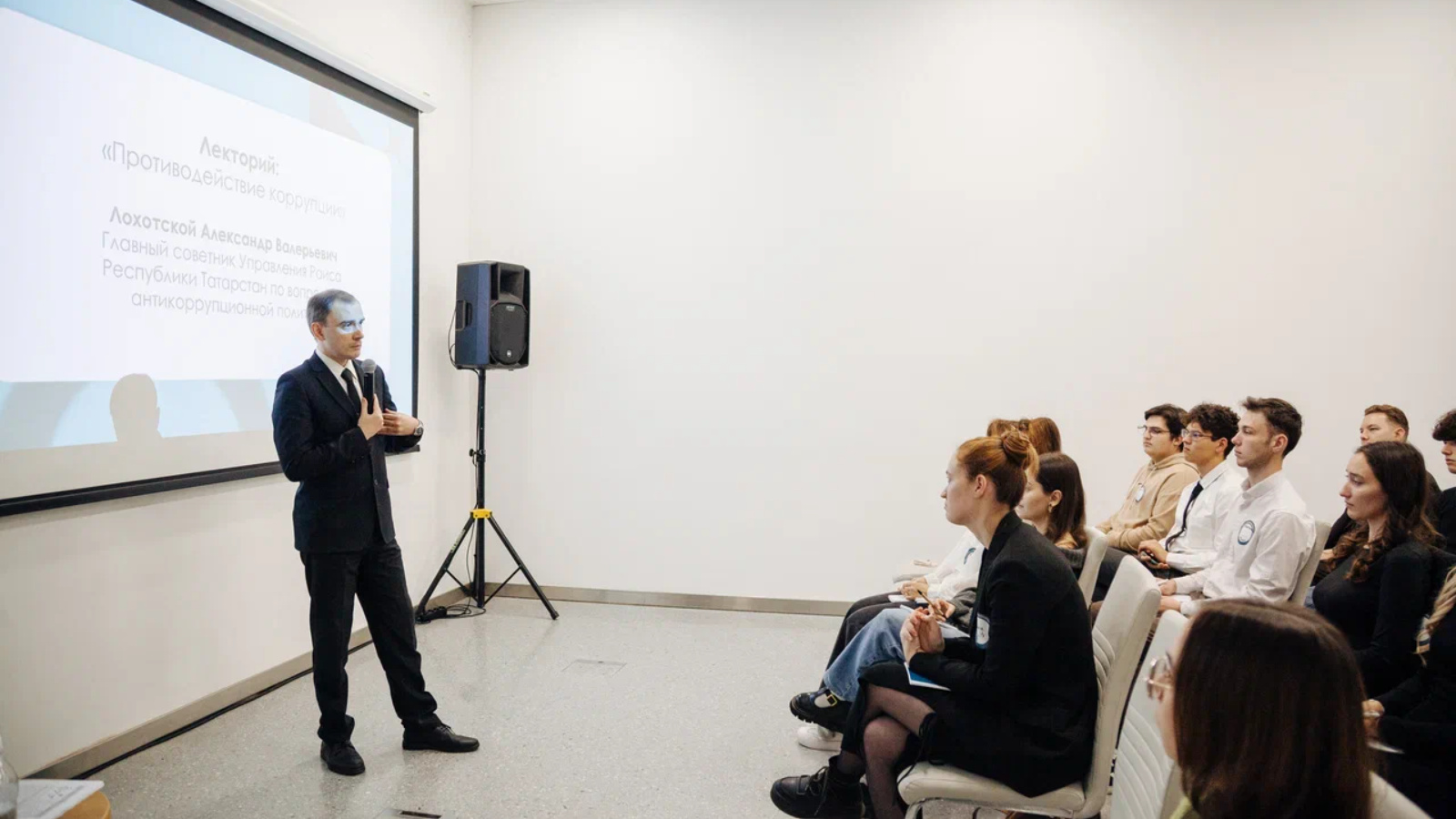 10 октября 2025 года представитель Управления Раиса Республики Татарстан по вопросам антикоррупционной политики Александр Лохотской принял участие в программе с лекцией, участниками которой стали конкурсанты, успешно прошедшие предыдущие этапы.