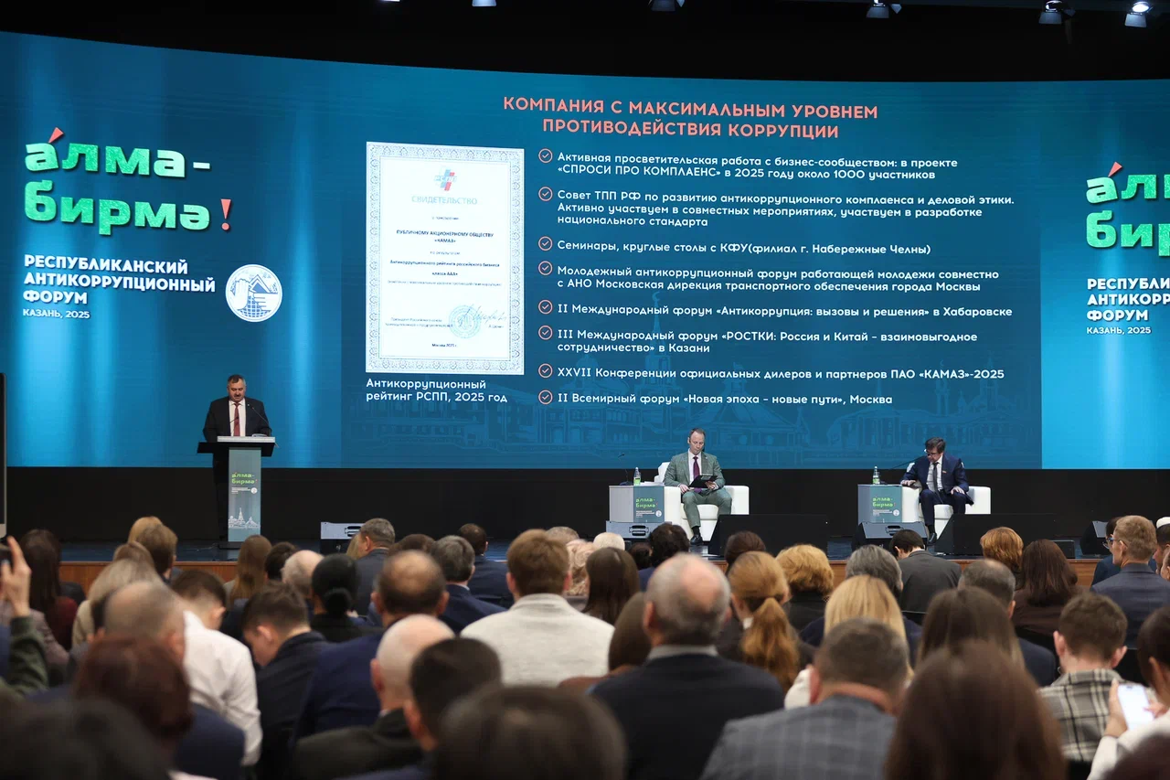 О реализуемых мерах по внедрению антикоррупционного комплаенса в ПАО «КАМАЗ» рассказал руководитель Службы комплаенс Александр Евграфов. В своем докладе он отметил, что компания строит взаимоотношения с клиентами и деловыми партнёрами на основе взаимного доверия и уважения, соблюдения общепринятых норм поведения и деловой этики, неприемлемости взяточничества и коммерческого подкупа. Руководители и специалисты «КАМАЗа» придерживаются принципов открытости, прозрачности, законности и добросовестно исполняют все свои обязательства, постоянно поддерживают и совершенствуют корпоративную культуру.
