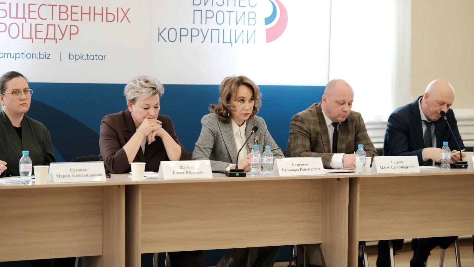 В заседании принял участие широкий круг представителей власти и экспертного сообщества: сопредседатели Общественного совета ЦОП Гульнара Сергеева и Тахир Мансуров, первый заместитель министра юстиции РТ Илья Гомзик, начальник управления развития предпринимательства министерства экономики РТ Мария Суховая, начальник отдела камерального контроля Управления федеральной налоговой службы по РТ Эльмира Хамидуллина, заместитель председателя Правления Союза «Торгово-промышленная палата Республики Татарстан» Сергей Карпухин, главный советник Управления Раиса Республики Татарстан по вопросам антикоррупционной политики Денис Сыров, заведующая отделом обеспечения деятельности Уполномоченного при Раисе РТ по защите прав предпринимателей Елена Шулина, члены Общественного совета, руководители бизнес-ассоциаций, а также юристы и адвокаты, сотрудничающие с Центром на безвозмездной основе (pro bono).